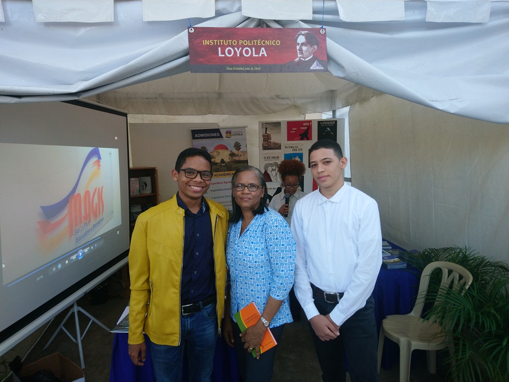El primer día de esta fiesta cultural contó con una transmisión en vivo de la emisora de Loyola, Magis 98.3 FM, con entrevistas a docentes, estudiantes, autores y público asistente desde el stand de esa institución educativa, espacio que durante el evento fue visitado por el reconocido escritor Odalís Pérez y estudiantes de otros centros, interesados en las producciones de los alumnos de la institución jesuita.