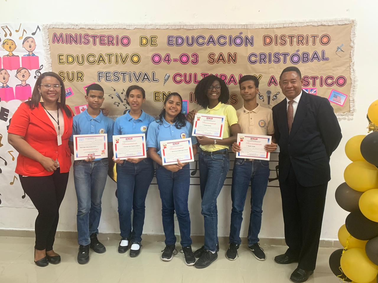 Tras la victoria alcanzada, los alumnos recibieron certificados de participación destacada entregados por un jurado compuesto por técnicos distritales y regionales del área de Idiomas y la subdirectora del Distrito Educativo San Cristóbal Sur, Blanca Tatis.