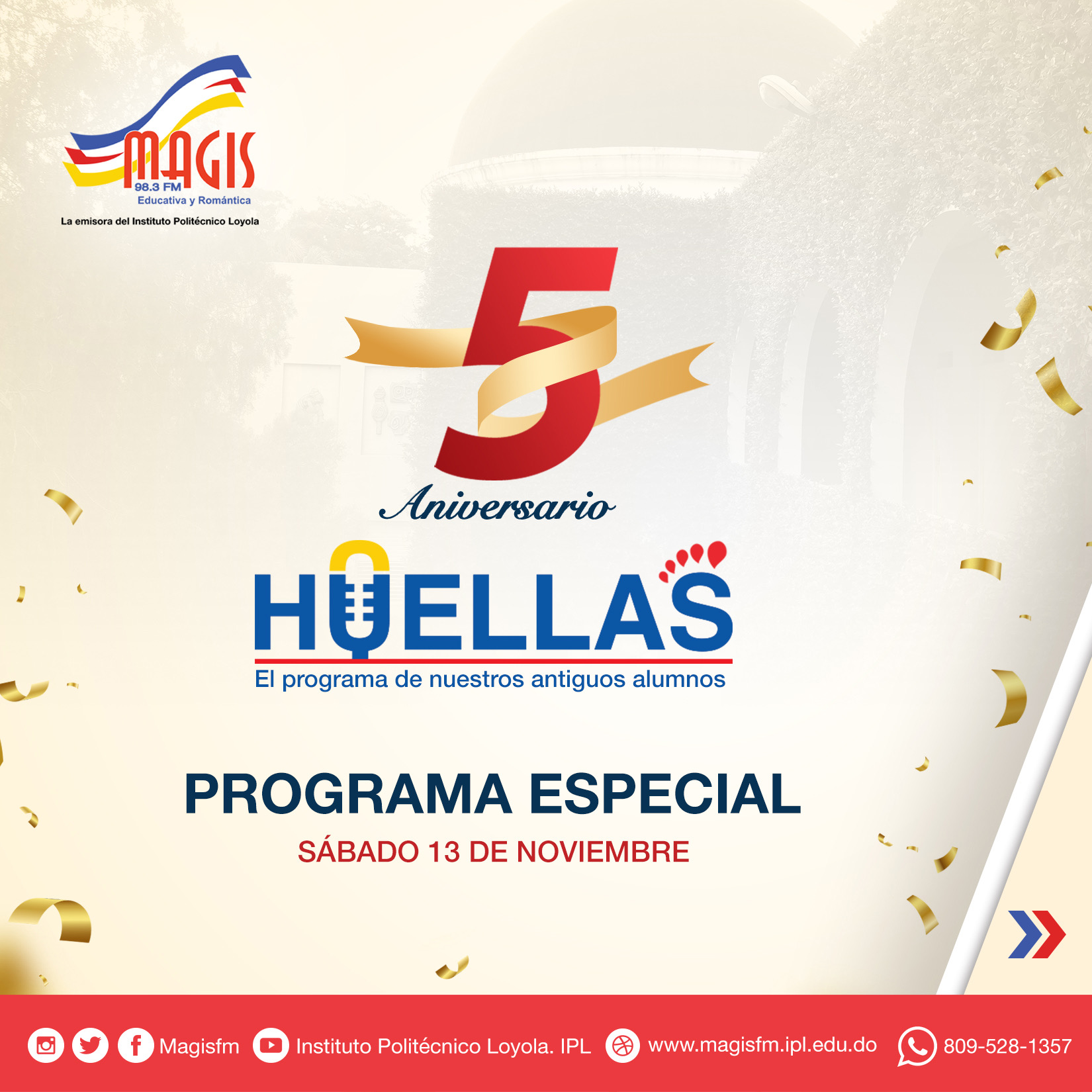 Huellas, el programa dedicado a los antiguos alumnos del Instituto Politécnico Loyola (IPL), cumplió cinco años de haber transmitido su primera emisión el 12 de noviembre de 2016 a través de la emisora institucional Magis 98.3 FM, medio en el cual continúa.