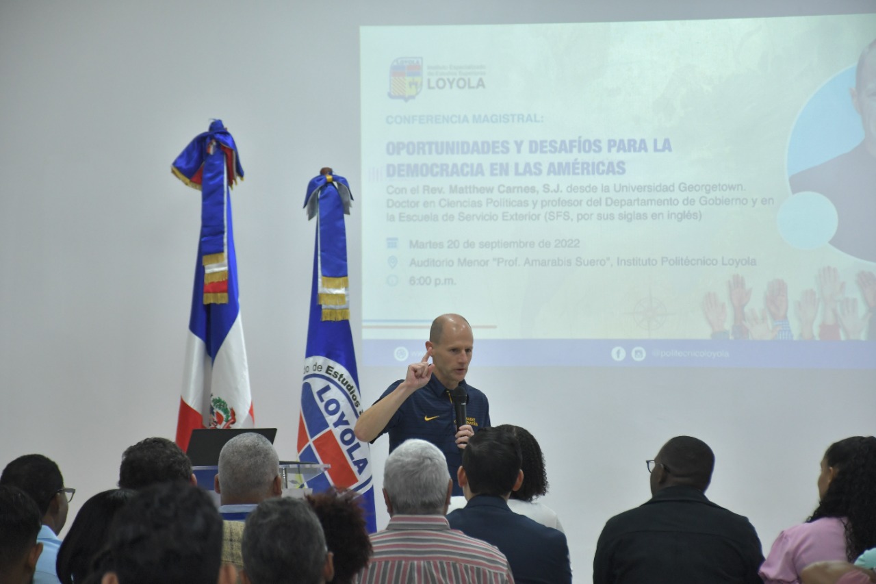 La conferencia magistral “Oportunidades y desafíos para la democracia en las Américas”, organizada por la Cátedra de Humanidades “P. Antonio Lluberes, S.J.” del Instituto Especializado de Estudios Superiores Loyola (IEESL), fue dictada el martes 20 de septiembre por el Rvdo. Matthew Carnes, S.J., de la Universidad de Georgetown, Estados Unidos.