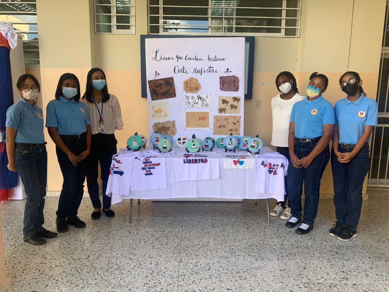 Estudiantes de 1ro y 2do grado del Nivel Secundario presentan la exposición de arte “Líneas que cuentan historia”, inspirada en la historia e identidad de la República Dominicana. El proyecto se exhibe en los pasillos del edificio de aulas desde el pasado 17 de febrero hasta el próximo 2 de marzo.
