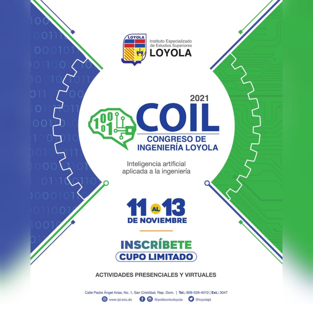 El Congreso de Ingeniería Loyola (COIL) 2021 se desarrollará del 11 al 13 de noviembre bajo el tema "Inteligencia Artificial Aplicada a la Ingeniería", así lo informó el director de Facultad Ingeniería del Instituto Especializado de Estudios Superiores Loyola (IEESL), Carlos Pereyra .