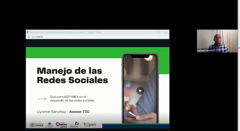 El Centro Mipymes Loyola y el Banco BHD-León ofrecieron el pasado miércoles 25 de agosto la conferencia virtual ”Manejo de las redes sociales”, dictada por el Ing. En Sistemas de Información, Liyismel Sánchez.