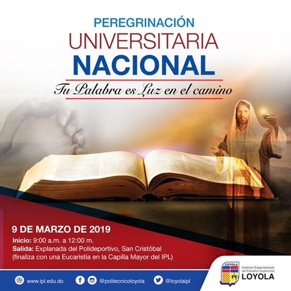 Con el lema “Tu palabra es luz en el camino,” será realizada mañana sábado la XIII Peregrinación Universitaria, coordinada desde el Instituto Especializado de Estudios Superiores Loyola (IEESL), a través de la Dirección de Pastoral.